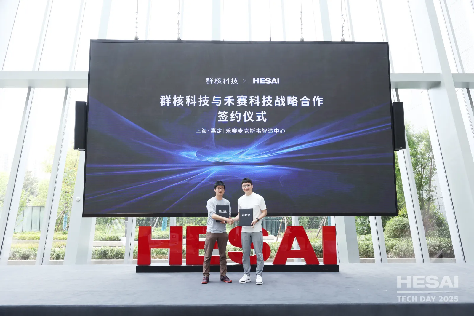 群核科技与禾赛科技战略合作签约 左:群核科技首席科学家 唐睿 右:禾赛科技联合创始人及 CEO 李一帆