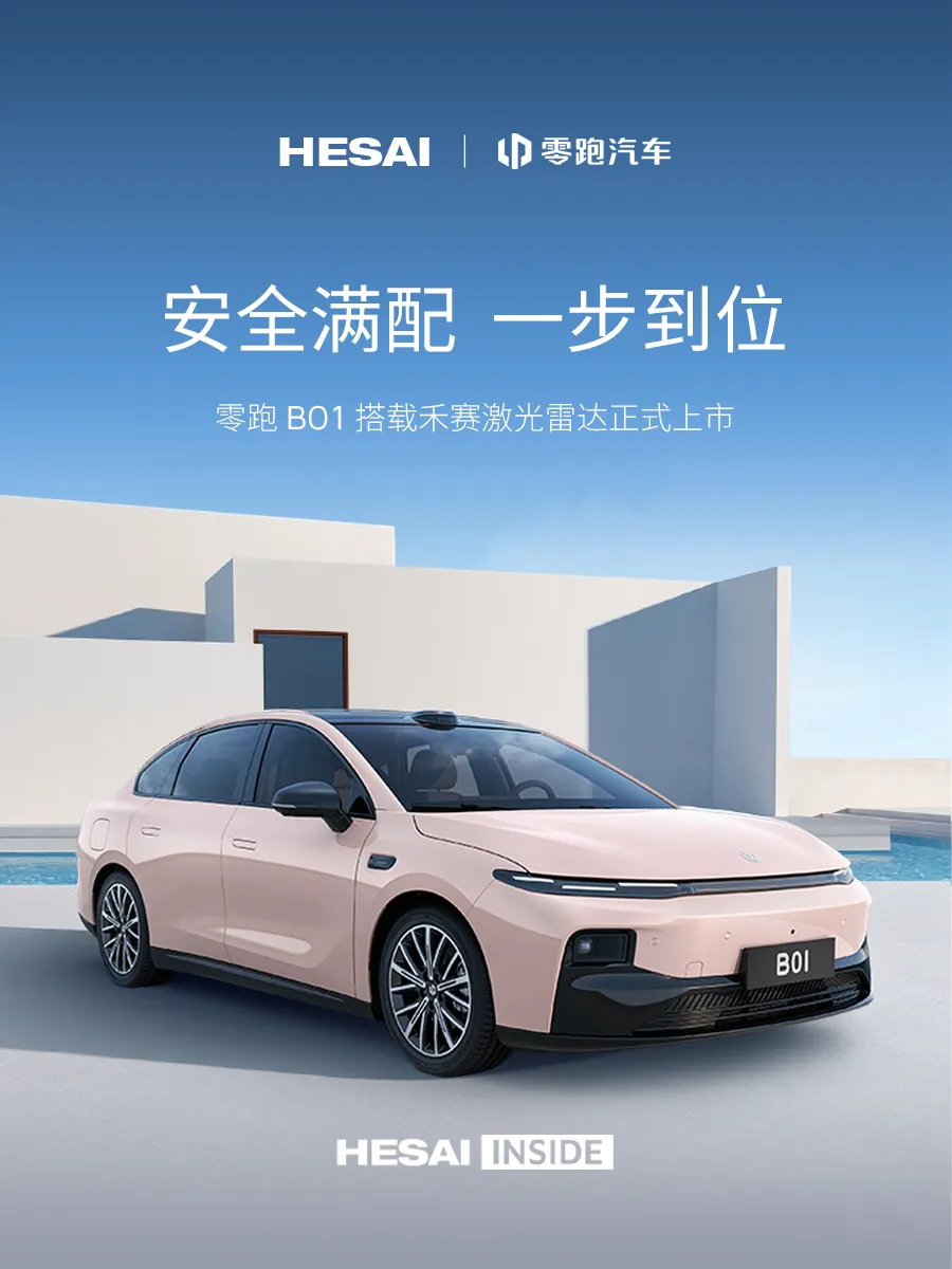 7 月 24 日,零跑汽车旗下 B 系列首款纯电轿车——零跑 B01 搭载禾赛激光雷达重磅上市,以“年轻人的高品质智能轿车”为定位,凭借颠覆性的产品力切入 A 级轿车市场,重新定义主流轿车新答案。新车推出三种续航共六款版本,其中 2 个版本车型搭载禾赛激光雷达,激光雷达版最低仅售 11.38 万元,即日起开启交付。