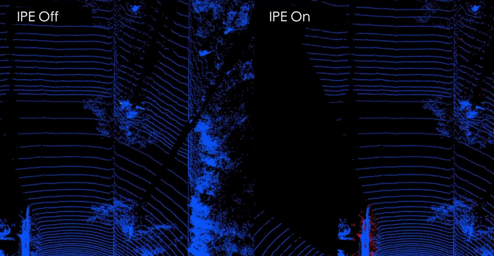 ATX 搭载了禾赛自研的全球首个智能点云解析引擎(Intelligent Point Cloud Engine, IPE),IPE 内部集成 256-core 波形处理核,通过每秒 246 亿次的高采样率实现了对全波形的精细捕捉,结合独有的全波形智能识别技术,能智能识别雨雾、前车尾气、灰尘等,并在点云中实时进行“像素级”标记,滤除 99.9% 以上的环境噪点,让智能汽车感知到的视野更清晰。